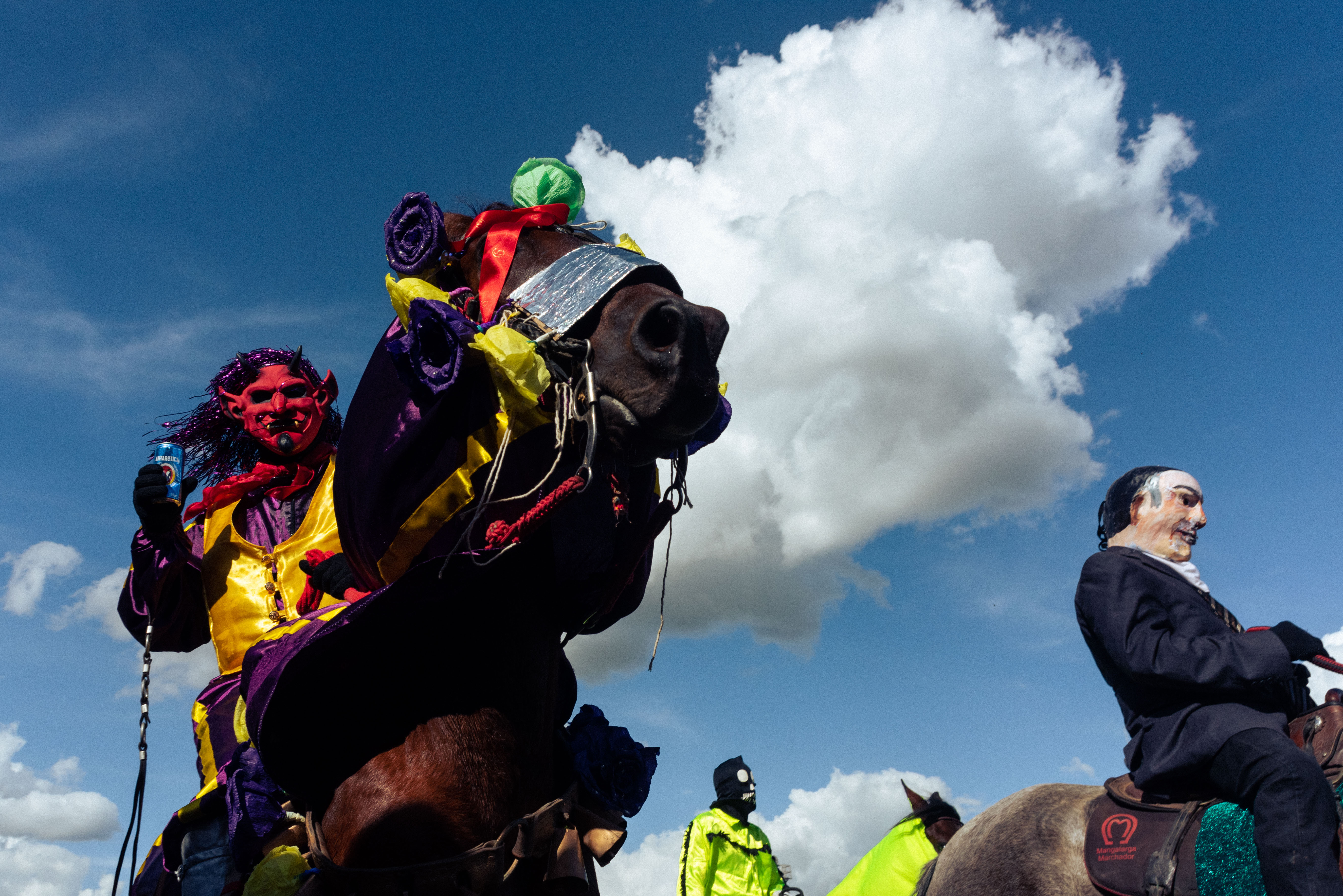 Over the three days of festivities, hundreds if not thousands of people take to the streets on foot and on horseback. Adorning masks, colourful clothes, gloves, and boots, and disguising their voices, they intend to be unidentifiable. Those on horseback also decorate their horses with ribbons, fabric, plants and much more – letting creativity run wild.