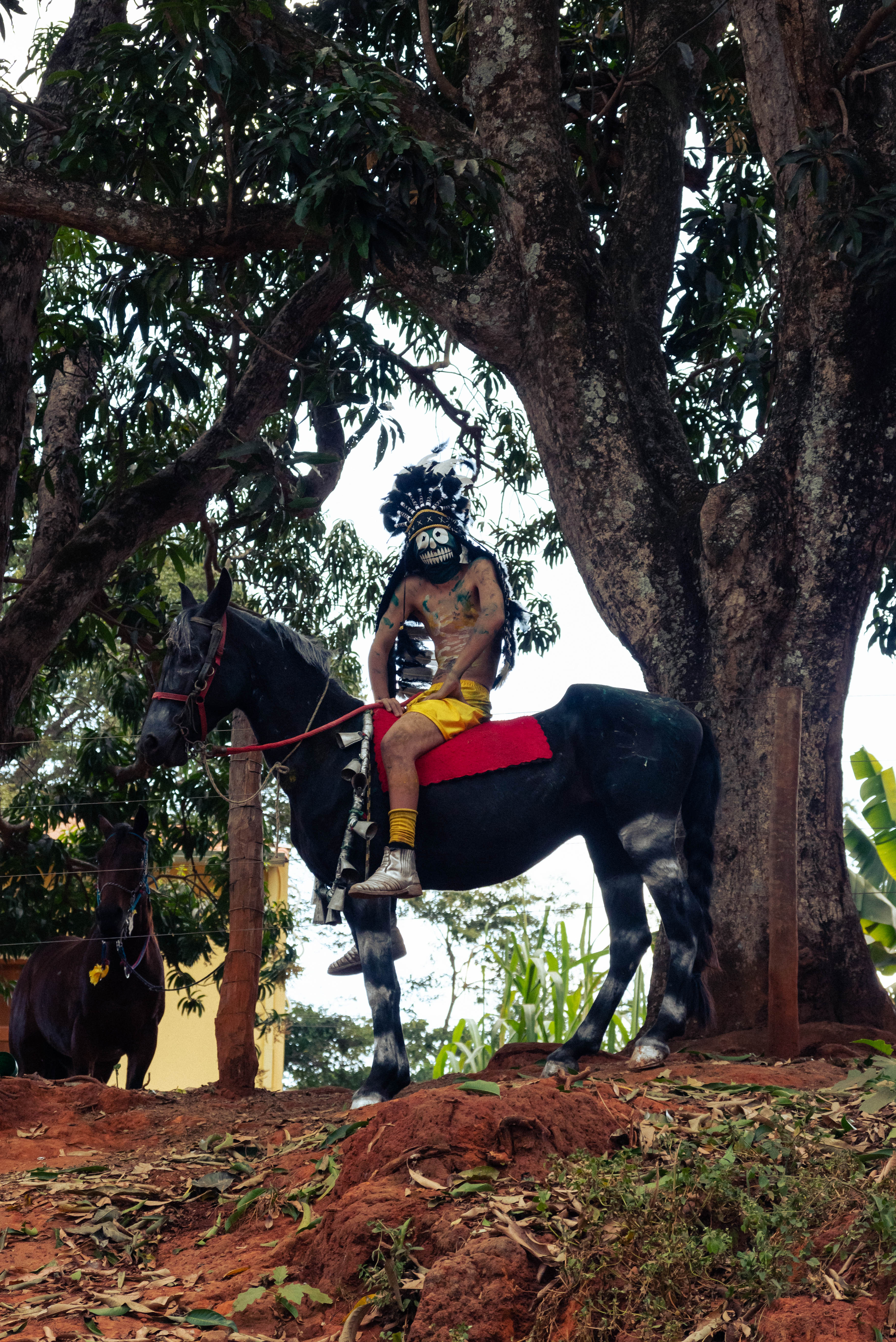 “Brazilian festivals are typical expressions resulting from the history of formation of its people, since colonization, when an endless process of miscegenation began; Brazil begins to be a space of diverse cultural interconnections. The black, the white and the Indian mix, and positive and negative results emerge. The cultural massacre of enslaved Africans and indigenous people to the detriment of European culture is evident, and even today we can see traces of it within the parties in Brazil. In the Cavalhadas de Pirenópolis, a typical figure of this party, the so called "curucucus" or simply "mascarados" appeared so that blacks, Indians and the poor could participate in this party reserved only for rich whites. Covered from head to toe, they were not identified, and in this way, only in this way, could they demonstrate freely.” – Cassio Reis Barbosa, 2017.